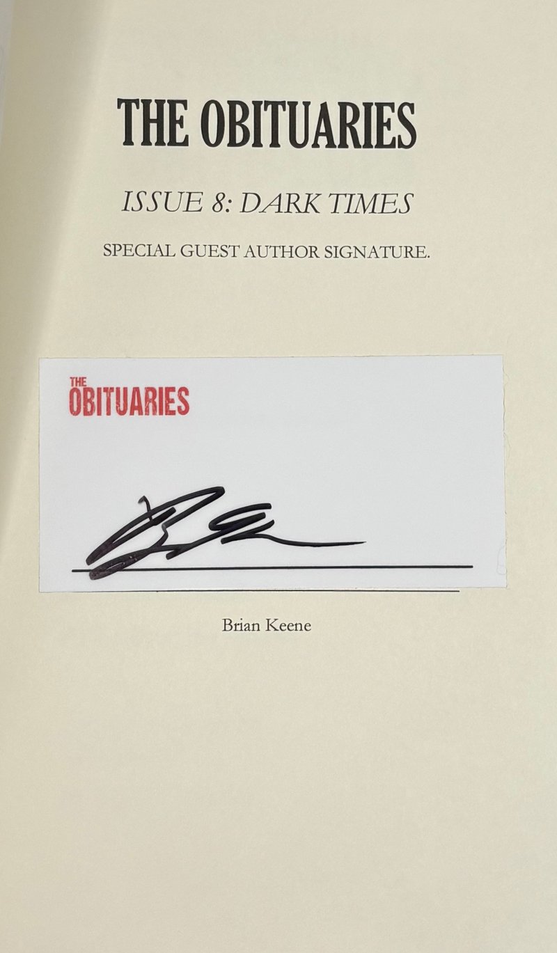 The long-awaited eighth issue of The Obituaries is here, and this time we're featuring horror legend Brian Keene as our special guest author!